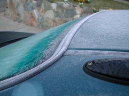 Erin didn't believe me yesterday when I said I had to dig the ice scraper out of the trunk of my car. Well, it dipped below freezing last night, too; here's proof.